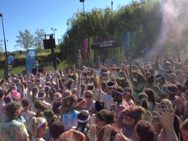 I just ran in the best race of my life. The Color Run is the first race that has proved to be as fun as its advertisements told me it was going to be. Walking up to the race location there was a mob of people dressed in white and accessorized with tutu’s, pink wigs, funky plastic sunglasses and neon everywhere! If you are not a runner, don’t be intimidated. This race is not timed, and you can run, walk, jog, skip or shimmy through the 5K. At four points during the run, you get ‘bombed’ with a color. Think that’s it? Oh no, when you hit the finish line, the post-race party consists of getting completely saturated in color and rocking out to an amazing DJ for a good solid hour. Even though my hair may be shades of green and purple for the rest of the week, it’s worth finding a way to make this happen every year.